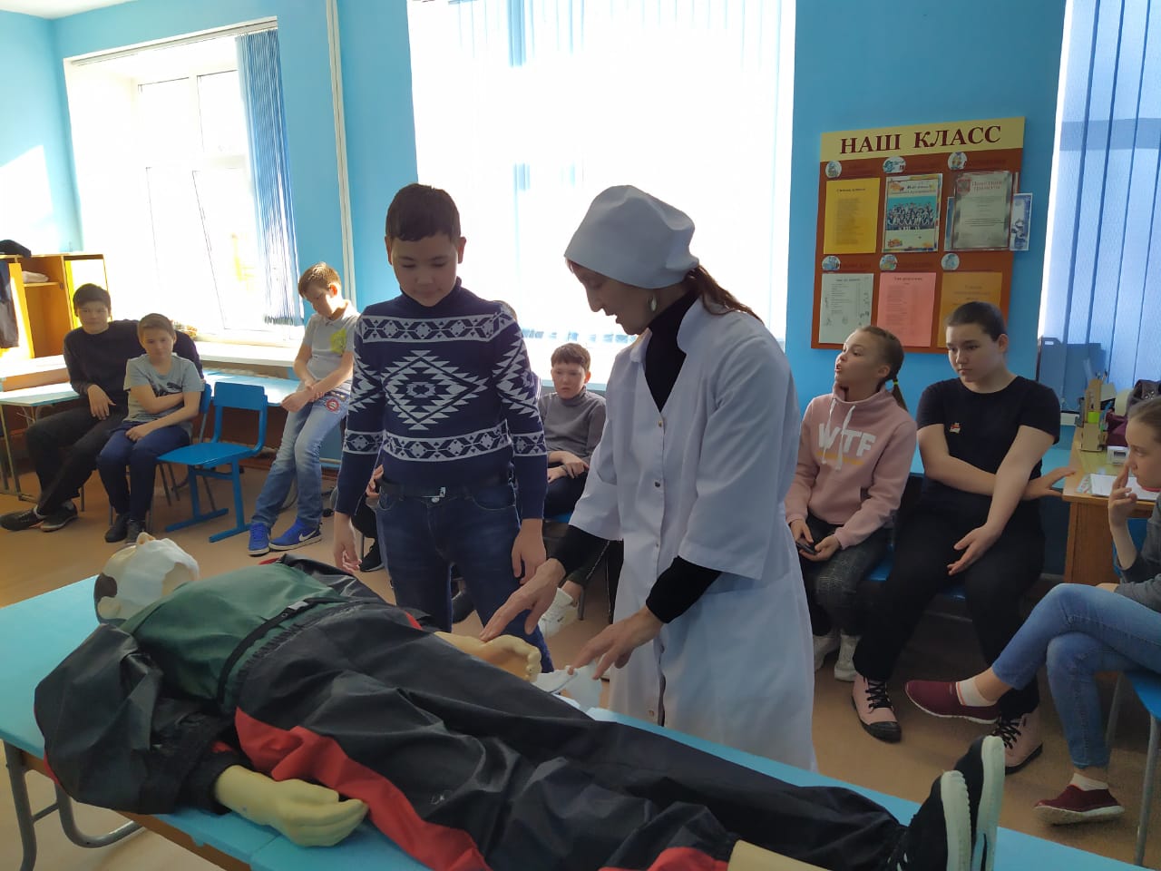 Совместное мероприятие для учащихся 6 "А" и 6 "Б" классов называлось "Первая медицинская помощь в ЧС", учащимся 7 классов напомнили о правилах пользования интернетом, а в 8 классе говорили о терроризме и экстремизме.