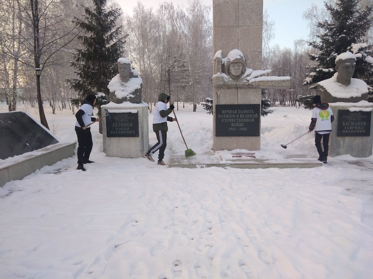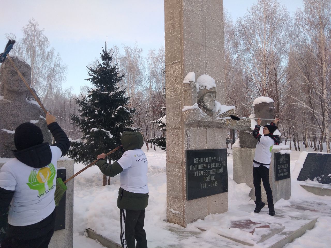 В рамках празднования Дня героев Отечества была организована очистка снега обелиска волонтёрами в парке с.Наумовка.